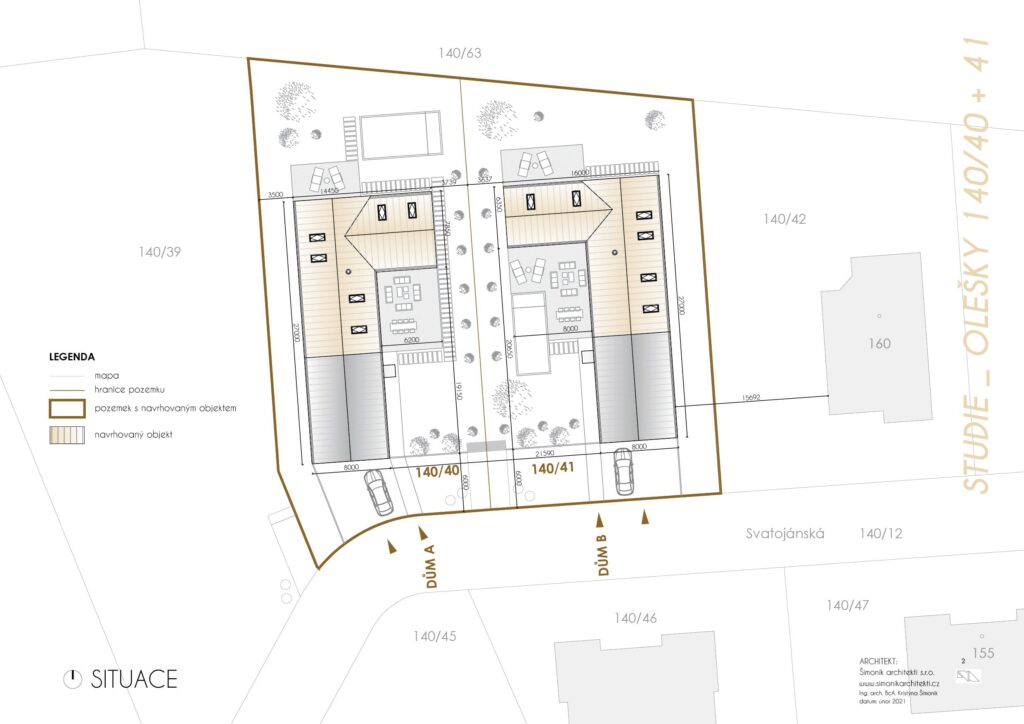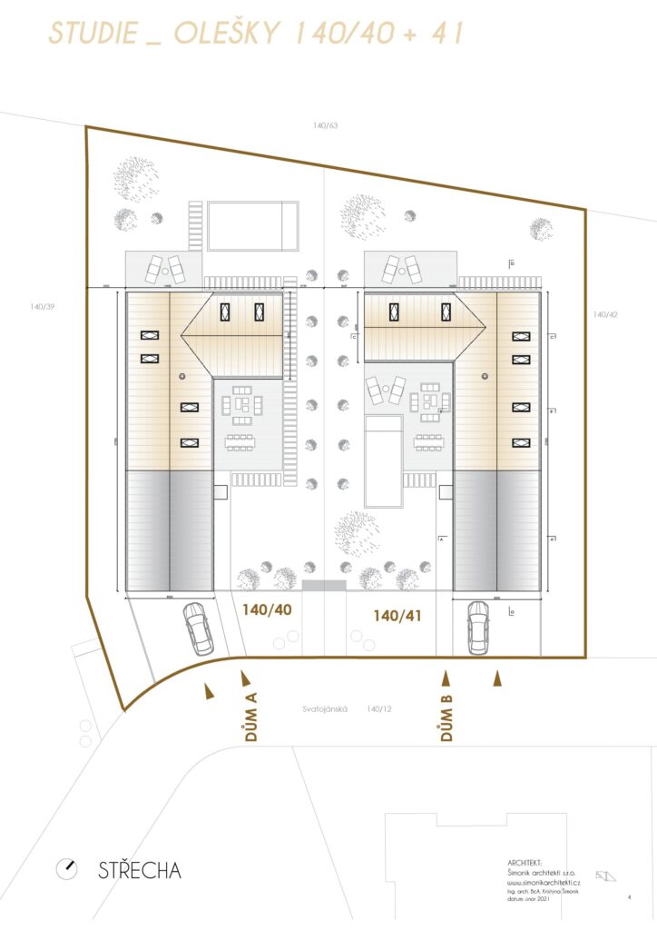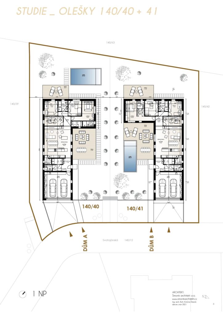Projekt se zabývá návrhem dvou rodinných jednopodlažních domů na parcelách 140/40 a 140/41 v obci Olešky (k.ú. Radějovice – okres Praha východ).
